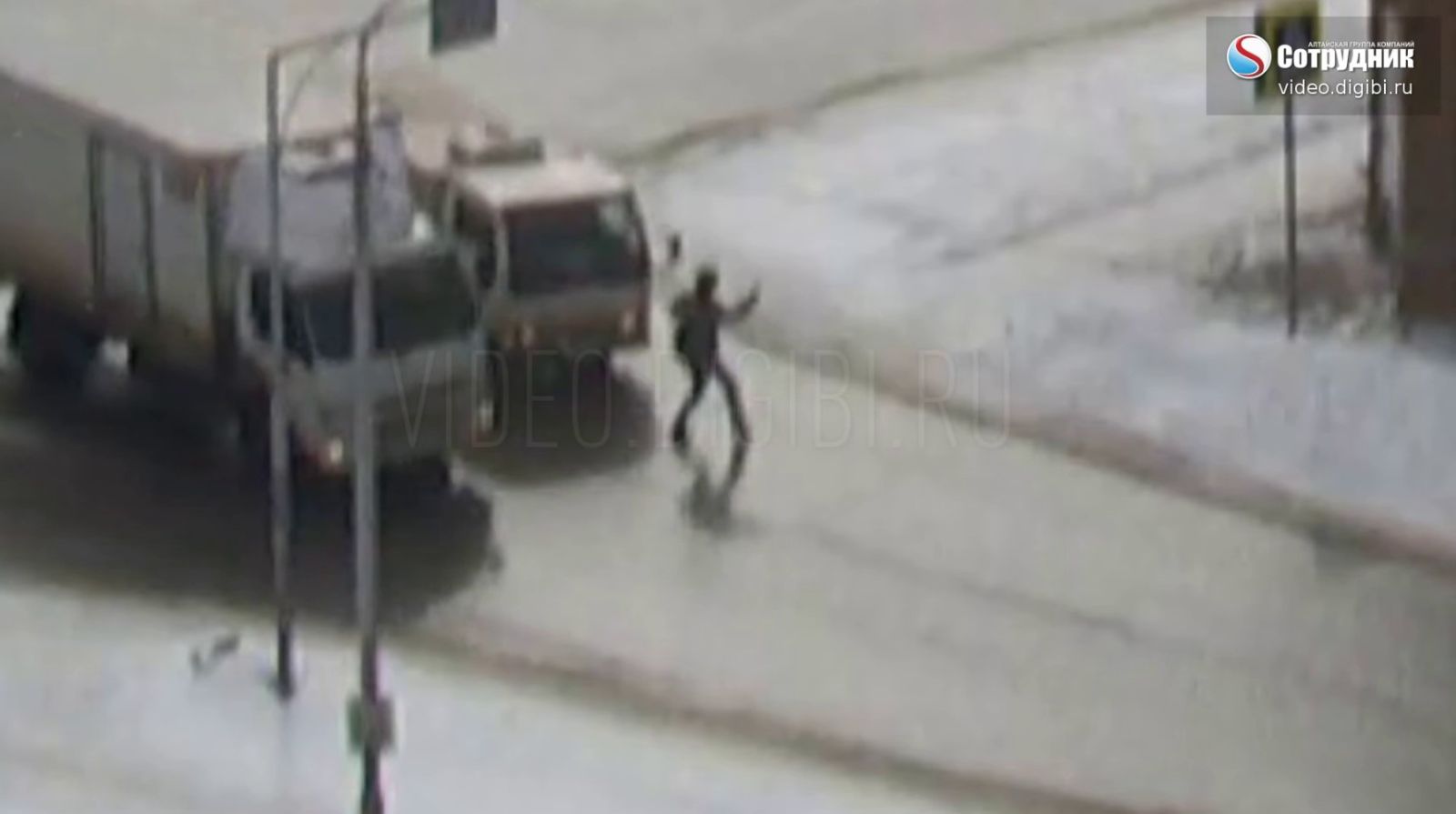 "Здоровья мужчине! Бешеный грузовик, похоже, скоро будет "пешеходом",