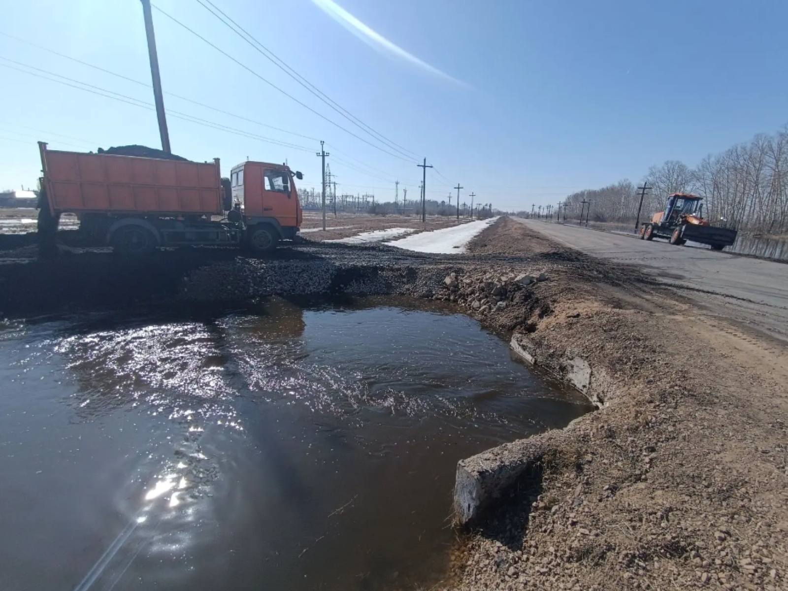 В Михайловском вскрыли водосброс с озера. Вода идет в умеренном темпе. Дамбу на назаровском направлении укрепляют.
