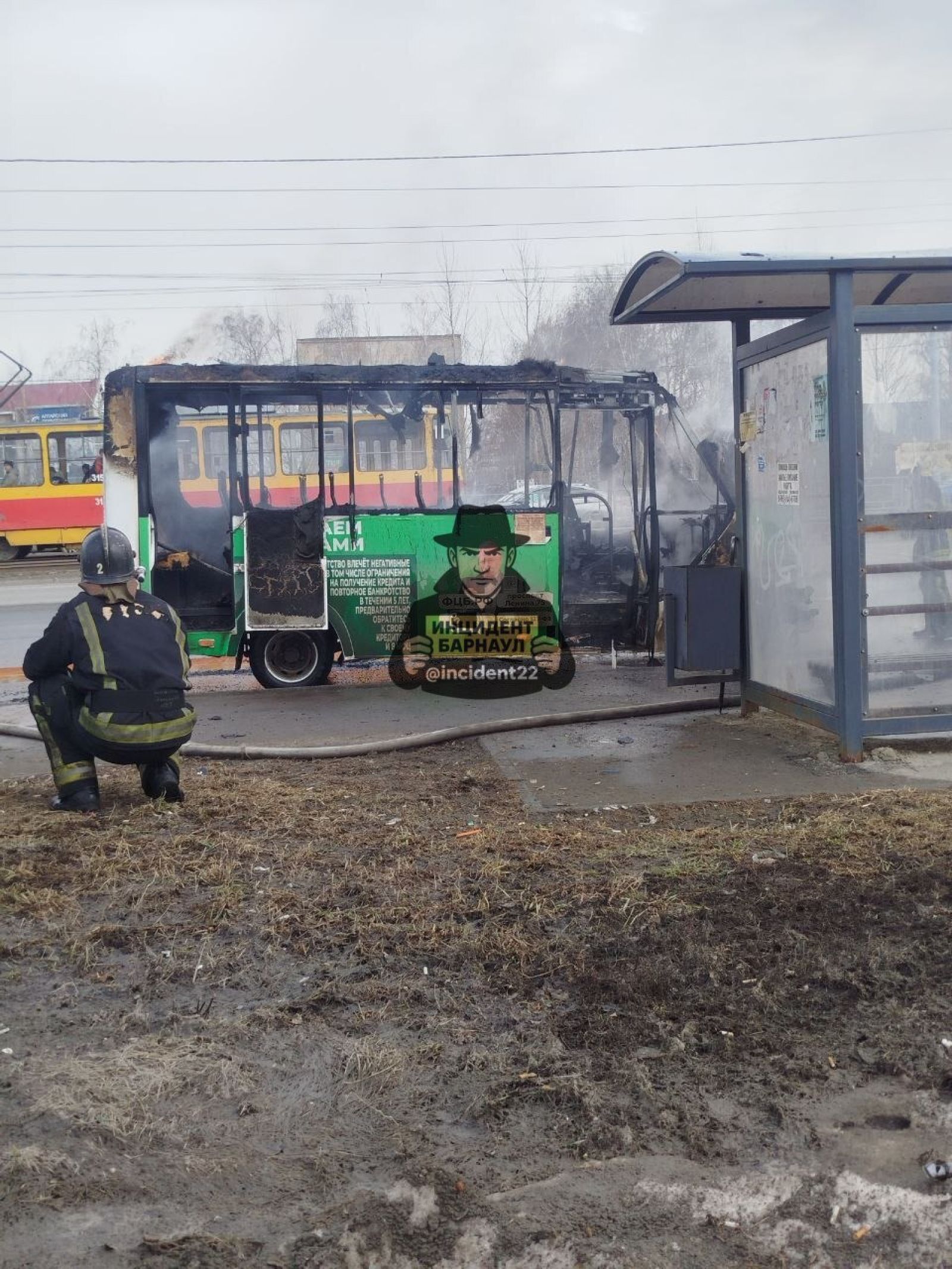 Автобус загорелся на пересечении улиц Балтийской и Малахова в Барнауле днем в среду, 1 апреля. Кадры с места происшествия опубликовал "Инцидент Барнаул".