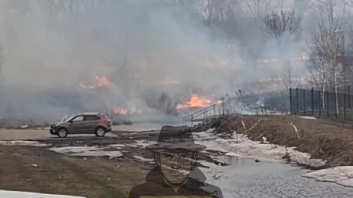 По словам местных жителей, трава воспламенилась на улице Прудской, рядом с территорией детского сада.