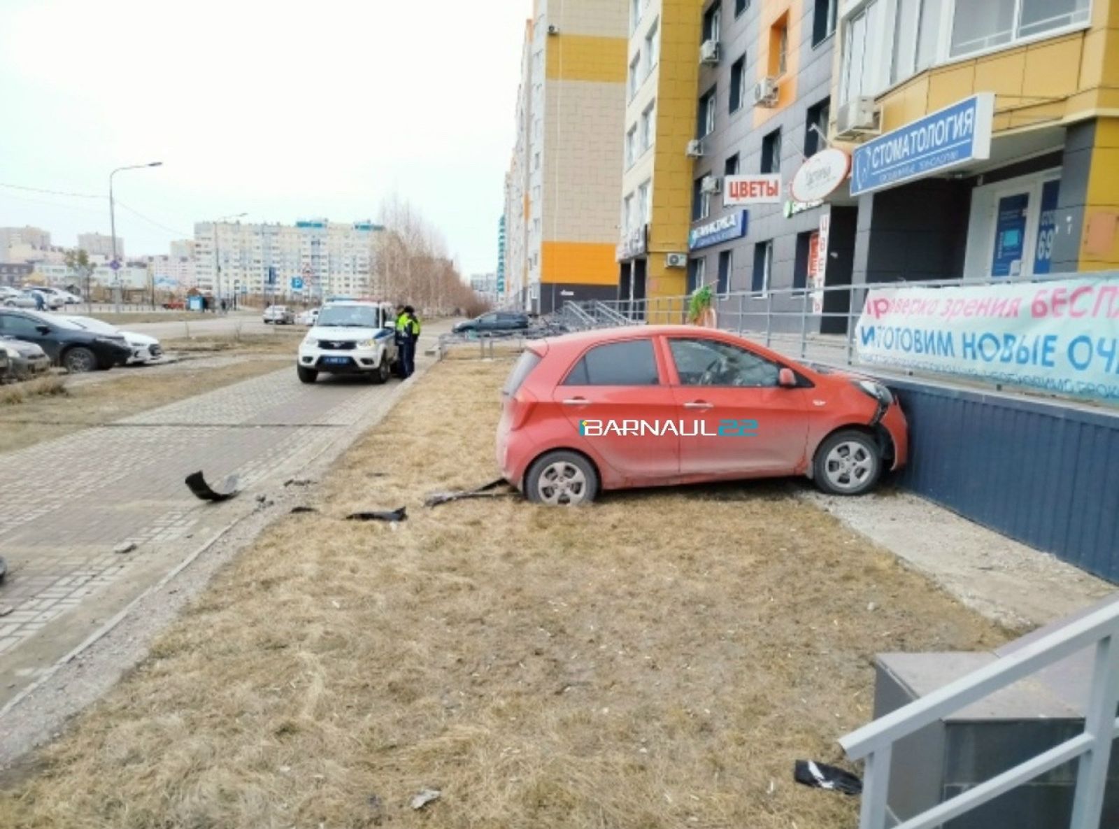 Судя по кадрам очевидцев с места происшествия, Kia Picanto вылетел на тротуар, повредив бордюр, а после столкнулся со стеной