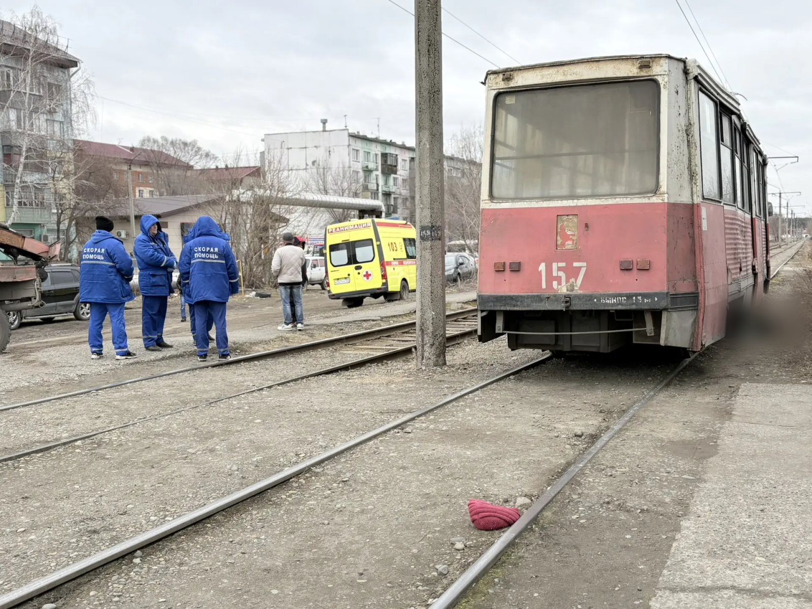 Инцидент произошел на трамвайной остановке "Молодежная" в районе Треста. Сразу после получения сигнала на место прибыли реаниматологи.