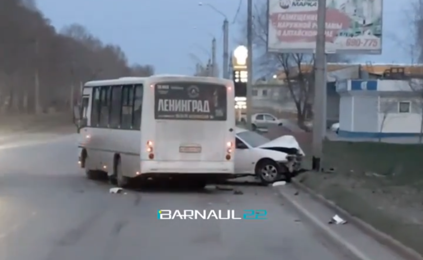 На опубликованных кадрах видно, что легковая машина серьезно пострадала. Были ли в общественном транспорте люди — неизвестно