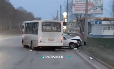 Автобус маршрута №25 врезался в автомобиль на улице Космонавтов в Барнауле утром 21 апреля. Об этом сообщает Barnaul 22.