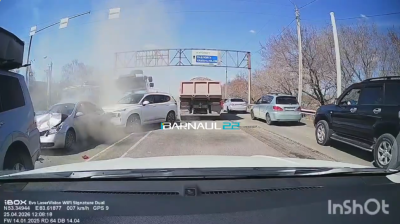 Массовая авария с бетономешалкой произошла на Павловском тракте днем в субботу, 25 апреля. Кадры инцидента опубликовал Barnaul 22.
