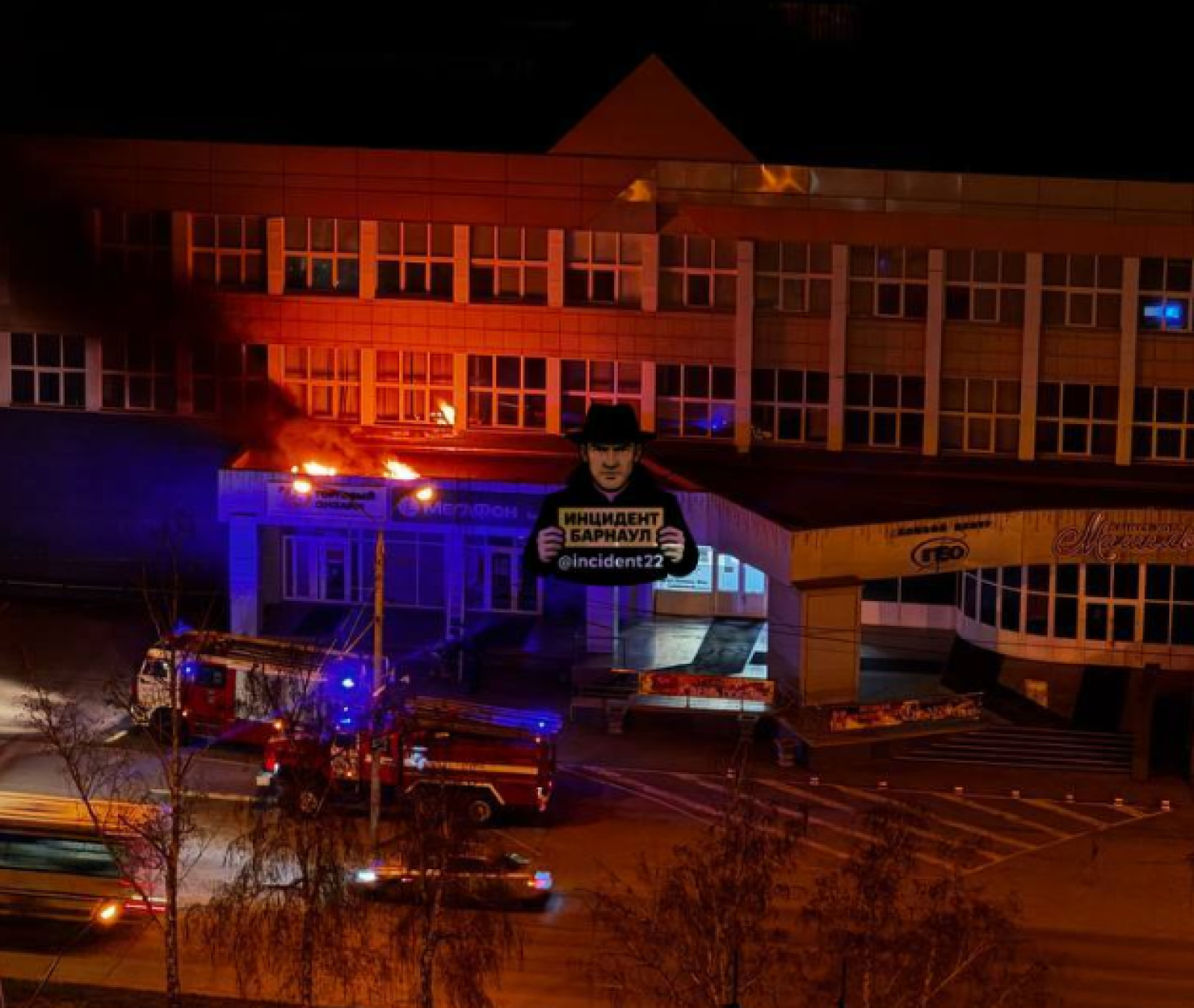 Фасад загорелся у делового центра "Гео" на проспекте Ленина, 154а, в Барнауле. Кадр очевидца опубликовал "Инцидент Барнаул".