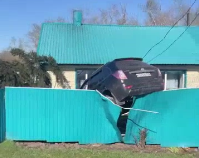 Утром 29 апреля жители села Енисейского Алтайского края обнаружили странную картину. Легковушка повисла на заборе из профлиста возле одного из частных домов. Видео опубликовано в telegram-канале "Бийск 22".