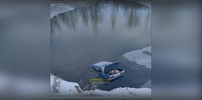 На кадрах с места происшествия видно, что автомобиль наполовину погрузился в водоем. Были ли в момент падения в его салоне люди – не известно. Обстоятельства происшествия выясняет полиция