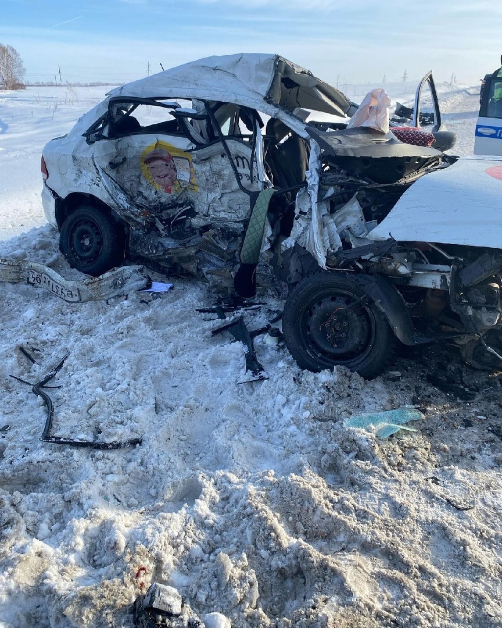 В результате аварии легковой автомобиль оказался практически полностью разрушен. Были ли в момент ДТП в его салоне люди — пока не известно