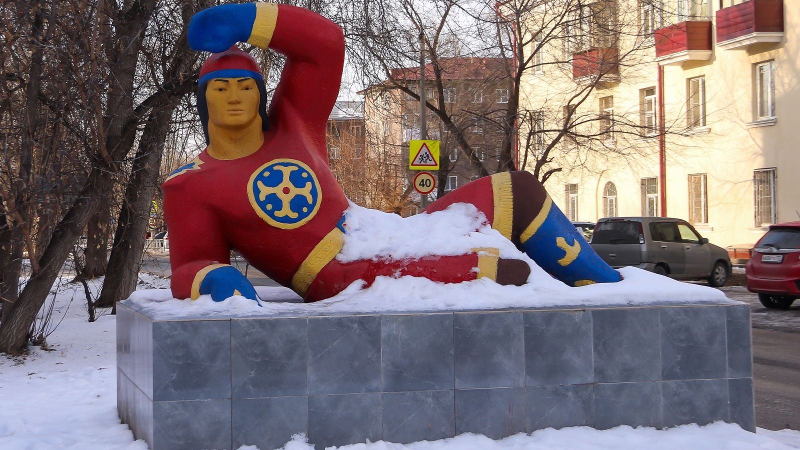 Кстати, одной из самых узнаваемых "фишек" Горно-Алтайской является скульптура батыра, которая расположена на пересечении улицы с проспектом Ленина. Это изображение алтайского воина хорошо известно многим барнаульцам.