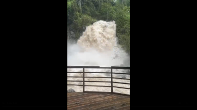Сильные дожди, прошедшие в регионе, вызвали резкий подъем уровня воды в реках и водопадах. По словам автора одного из видео, он наблюдал такое впервые