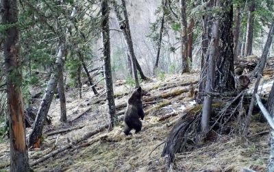 Фотоловушка Алтайского биосферного заповедника запечатлела стоящего на двух лапах медведя. Снимки опубликованы в телеграм-канале учреждения.