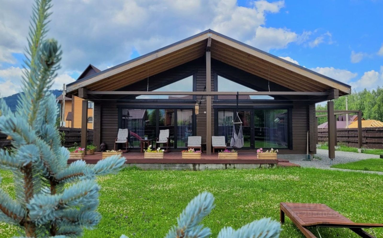 Одноэтажный коттедж находится около развивающегося курорта Манжерок. Расстояние до подъемника составляет 450 метров, а до озера Манжерокское — 300 метров