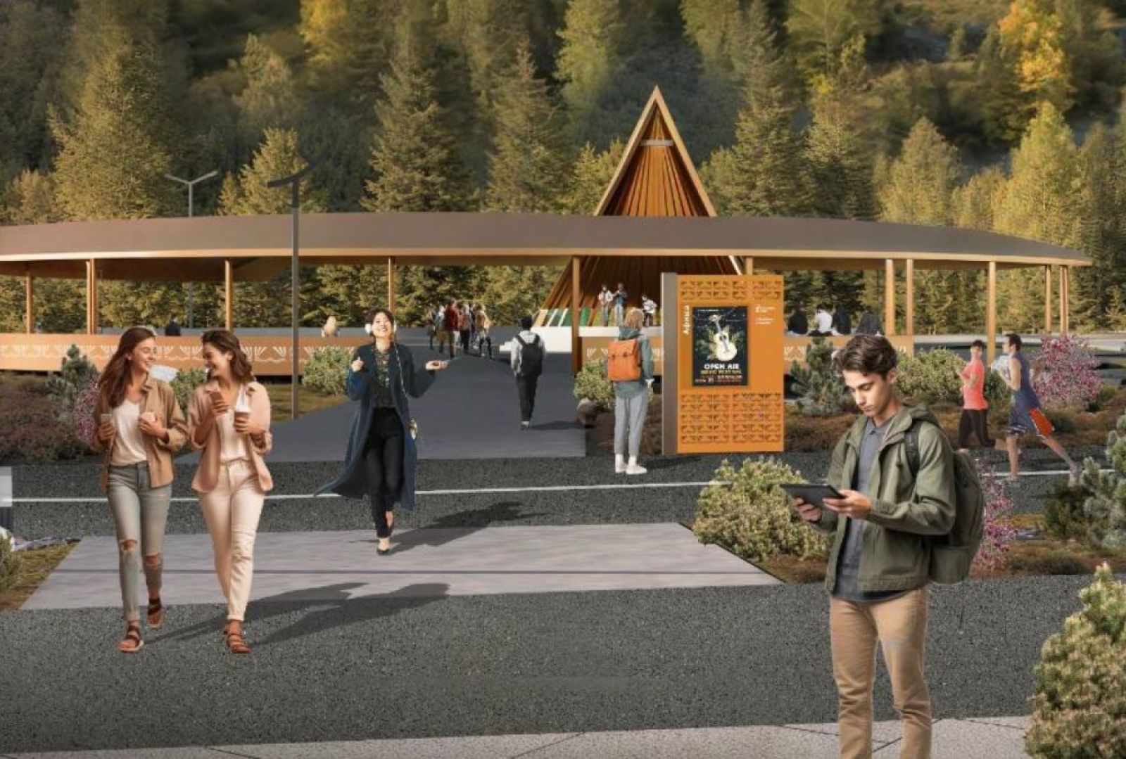 "Основные работы пройдут слева от кинотеатра "Голубой Алтай". Здесь проведут полноценное озеленение, установят сцену, спортивные и детские площадки, зоны отдыха с беседками и качелями. Предусмотрены беговой и лыжный маршруты, скейт-площадка и смотровая".