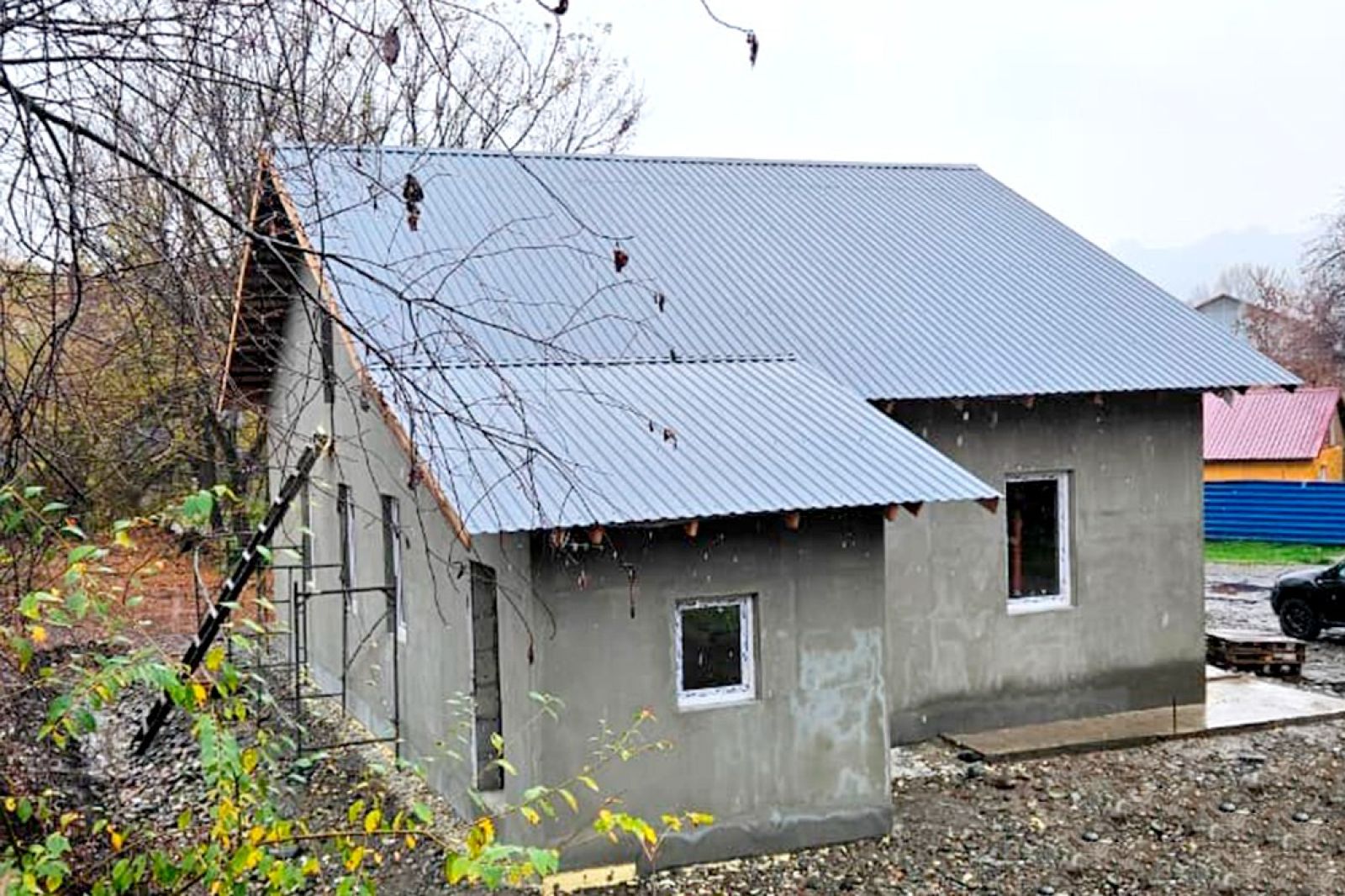 На данный момент уже построено само здание, а также установлены двери и окна. Теперь рабочие занимаются монтажом отопления. Затем начнется внутренняя отделка помещений.