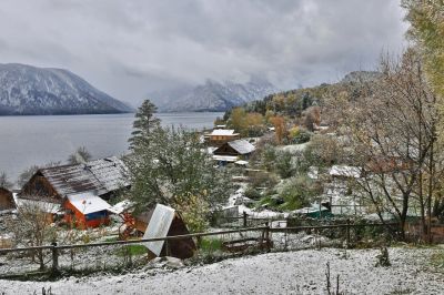 "Снег на заповедном побережье Телецкого озера появился уже в первой декаде октября, когда еще не успели угаснуть яркие краски золотой осени", – рассказывают в посте.