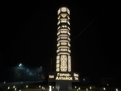 Помимо этого, в композицию вписаны световые надписи с названиями республиканской столицы в разные исторические периоды: "Улала – Ойрот-Тура – Горно-Алтайск". Отмечается, что их написание соответствует главному официальному документу – Уставу Горно-Алтайска.