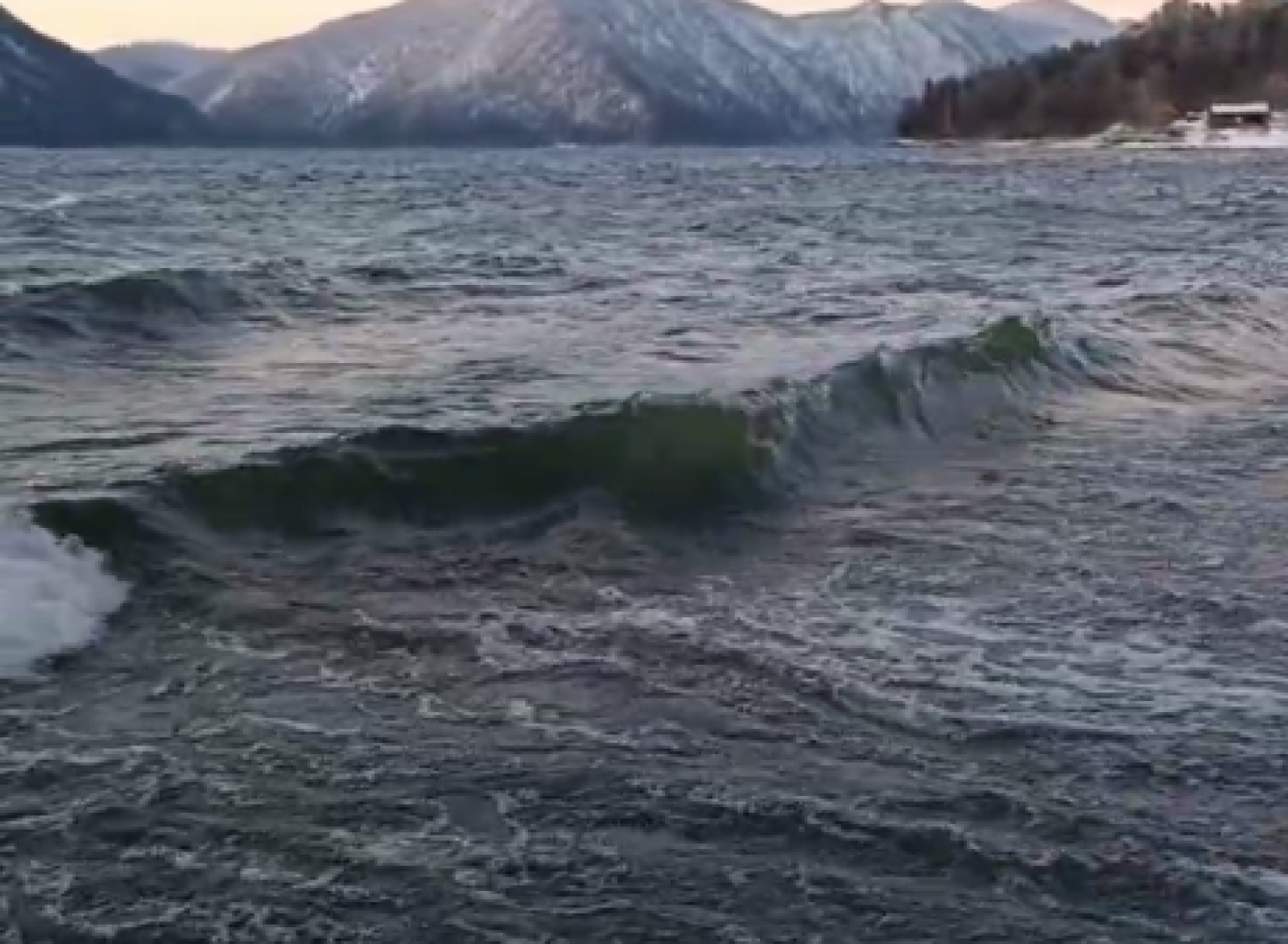 Зима наступает на Телецкое озеро — пока горы окрасились в черно-белые цвета, суровые воды озера бушуют. Кадры с берега, снятые неподалеку от села Яйлю, опубликовал Алтайский заповедник в telegram-канале.
