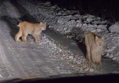 На прошлой неделе гости села Яйлю встретили на дороге рысье семейство. Об этом рассказали в telegram-канале Алтайского заповедника.