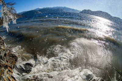 "Когда уже установившиеся морозные дни на заповедных берегах Телецкого озера сменяет потепление, начинается оно с сильных верховок", – отметили в публикации.