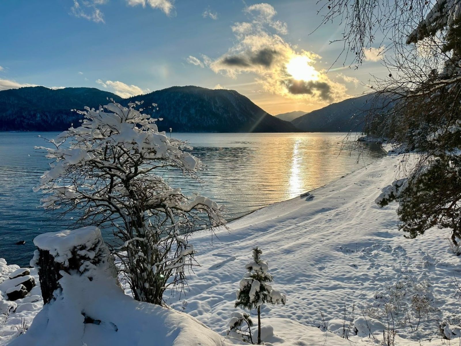 Мощный снегопад и похолодание до -15 градусов обрушились на заповедные берега Телецкого озера в Республике Алтай, сообщает telegram-канал Алтайского заповедника.