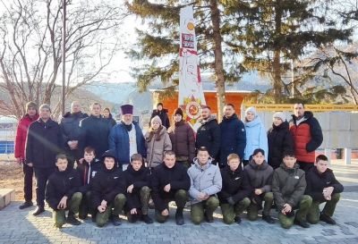 Присутствующие возложили к мемориалу цветы и почтили память навсегда оставшихся в безымянных могилах воинов минутой молчания