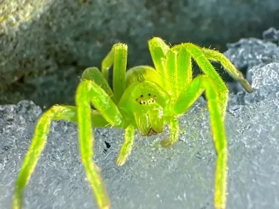 Сотрудники Алтайского биосферного заповедника заметили на снегу в прибрежной части Телецкого озера ярко-зеленого паука. Кадры опубликовала пресс-служба учреждения.