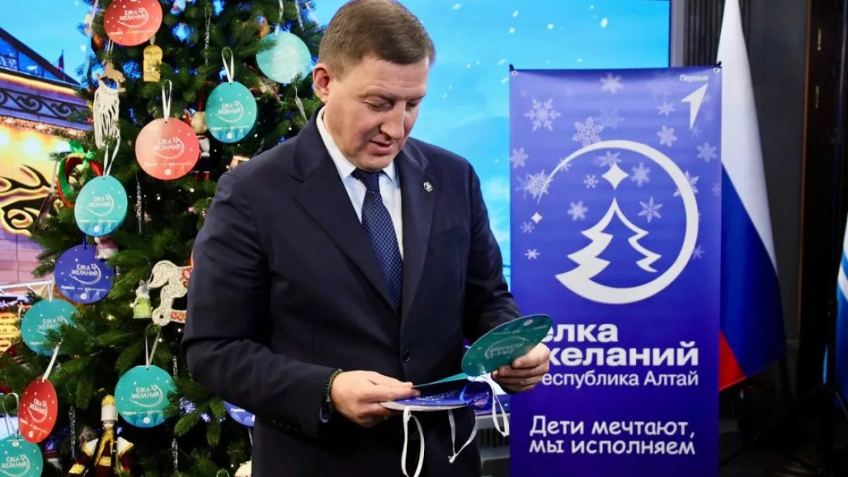 23 декабря в регионе стартовала благотворительная акция "Елка желаний". Глава республики снял с новогоднего дерева открытки с желаниями детей из Горно-Алтайска, Онгудая, Элекмонара и города в ЛНР