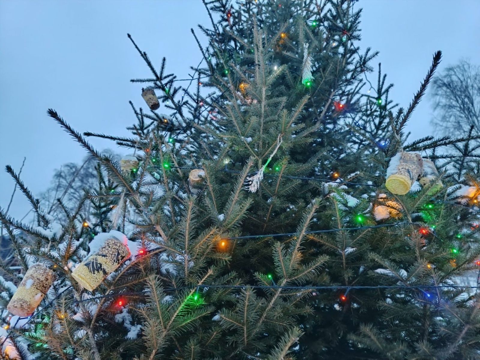 В заповедном селе уже несколько лет существует традиция наряжать елку специальными съедобными игрушками, которые не вредят природе и служат угощением для зимующих птиц