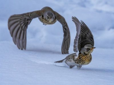 Сотрудница Алтайского биосферного заповедника Татьяна Воробьева поймала в объектив камеры на Яйлинской террасе зимующих дроздов-рябинников. Снимки опубликованы в telegram-канале учреждения.