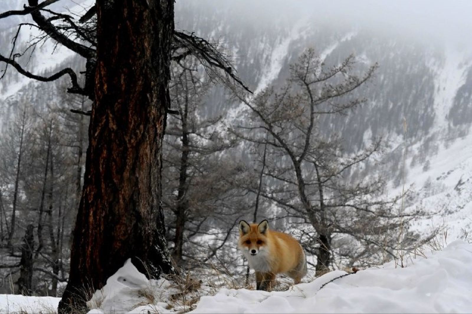 Заметив автоматическую камеру, хищница решила не рисковать и ретировалась. Однако фотоловушка успела заснять ее яркую теплую шубку