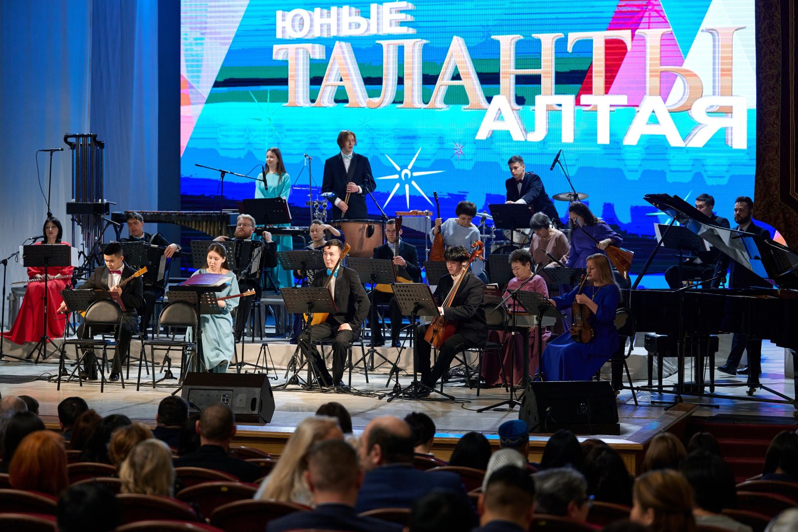 На главной сцене региона выступили выпускники музыкальных школ и школ искусств республики, которые сейчас обучаются в федеральных колледжах и институтах культуры. Они представили свои творческие номера в сопровождении Государственного оркестра Республики Алтай.