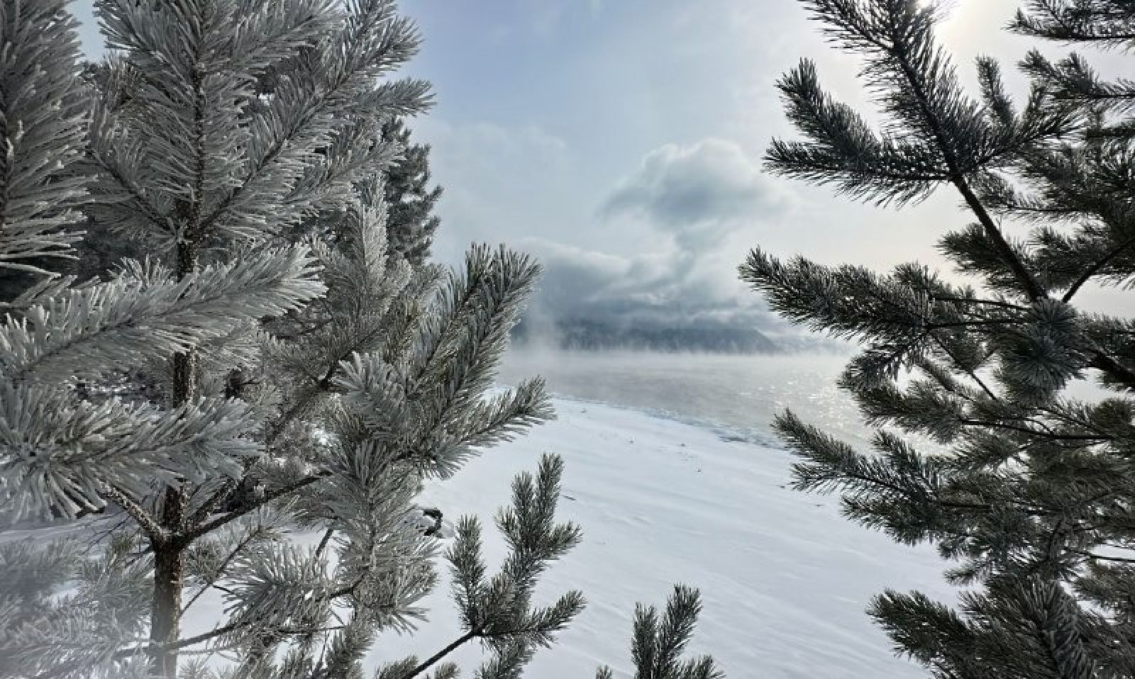 Сотрудники учреждения Роман и Татьяна Воробьевы запечатлели у берегов озера хвою, "поседевшую" от изморози. Такое преображение произошло в результате сублимации. Это процесс, когда из-за высокой влажности и мороза водяной пар превращается в лед, минуя жидкую фазу.
