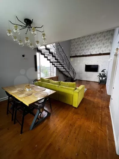 Дом построен в 2020 году, в нем три комнаты, технические помещения, гардеробная, кабинет, кухня и гостиная с обеденной зоной на первом уровне. На втором этаже расположены спальни, а также выход на застекленный балкон.