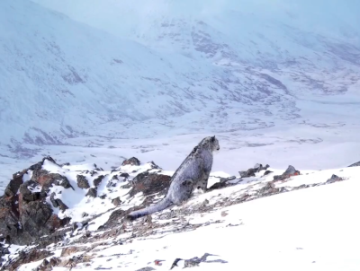 Обычно снежные барсы прячутся в укромных безветренных местах (расщелинах скал, навесах скалистых выступов), но также могут устроиться и прямо на снегу, подобно герою видео.