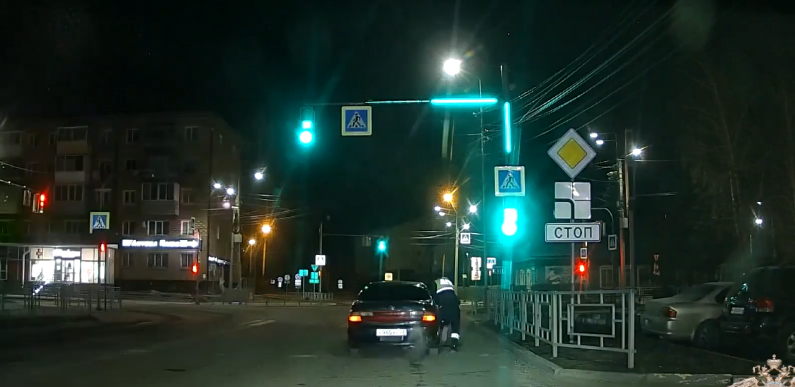 Долго ехать у водителя не получилось, и он на высокой скорости наехал на бордюр. От удара инспектор упал на землю и получил травмы. Нарушителя задержал его напарник.
