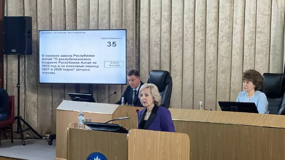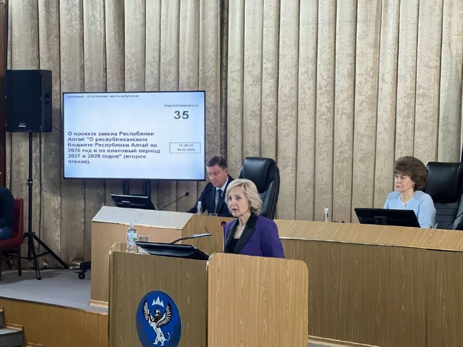 18 декабря на сессии Госсобрания – Эл-Курултай Республики Алтай депутаты приняли бюджет региона на 2026 год и плановый период 2027–2028 годов. Проект закона во втором чтении представила зампред правительства, министр финансов РА Ольга Завьялова, сообщает пресс-служба республиканского парламента.