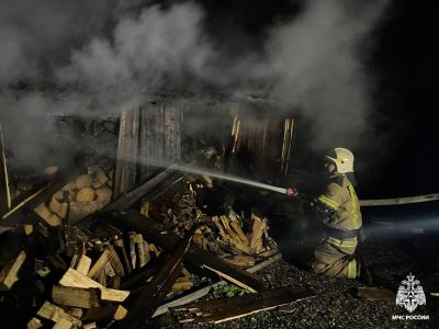 Огонь потушили в 03.42. Площадь пожара составила 200 кв. метров. Специалисты эвакуировали два газовых баллона. Обошлось без пострадавших. Причина происшествия выясняется.