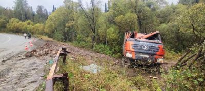 50-летний водитель самосвала Shacman, житель села Паспаул Чойского района, не выбрал безопасную скорость, не справился с управлением, протаранил металлическое ограждение и съехал с дороги.