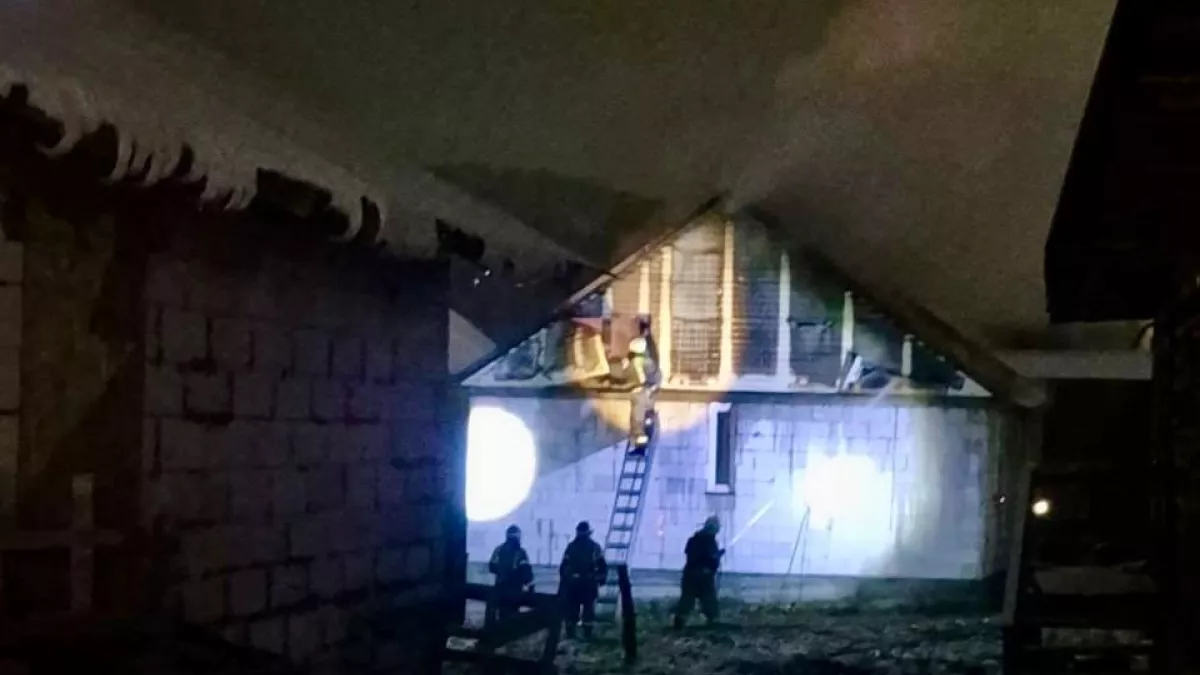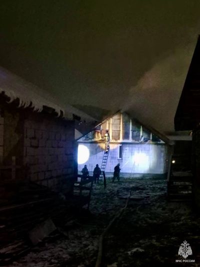 Спецслужбы узнали о возгорании в 22.54. Когда на место прибыло первое подразделение, у дома уже полностью полыхала крыша. Пожар потушили в 23.37. Его площадь составила 90 кв. метров.