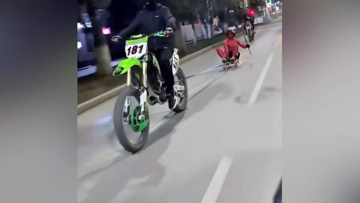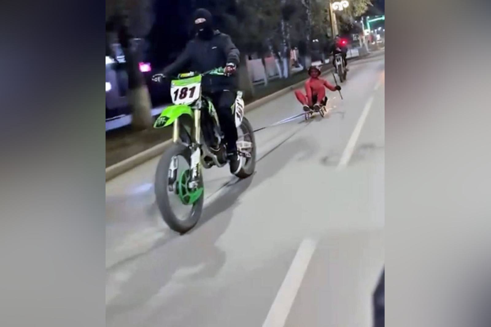 В начале ноября в соцсетях распространилось видео, на котором мотоциклист на привязанных к транспортному средству санках везет человека по центру Горно-Алтайска. Пассажир опасного "аттракциона" окрасил кожу в красный цвет, надел на голову шлем с рогами и взял в руки вилы. Все это участники ролика организовали ради участия в конкурсе стримера Mellstroy и шанса получить приз.