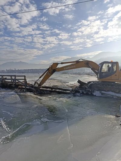 Чтобы справиться с угрозой подтопления жилых домов и обеспечить беспрепятственный пропуск воды, администрация приняла решение демонтировать два пролета мостового перехода.