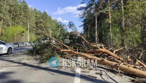 Большое дерево рухнуло на дорогу на въезде в Бийск
