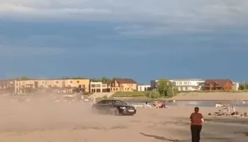 Неизвестный устроил дрифт на черном автомобиле на городском пляже в Барнауле. Видео