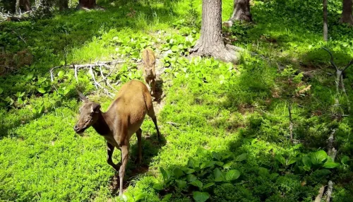 Фотоловушка Алтайского заповедника засняла косулю с любопытным детенышем. Видео