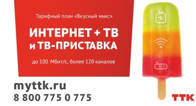 Этим летом ТТК приготовил "Вкусный микс". Самые популярные продукты – домашний интернет, интерактивное телевидение и ТВ-приставка собраны в единый продукт, который поможет сделать наступающее лето ярким и насыщенным.
