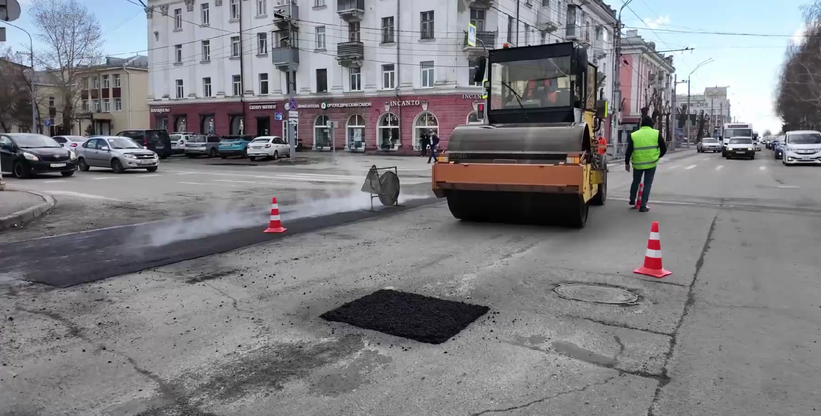 Работы стартовали во вторник, 15 апреля. Cначала эксперты обследовали дорожное покрытие города и составили план проведения работ