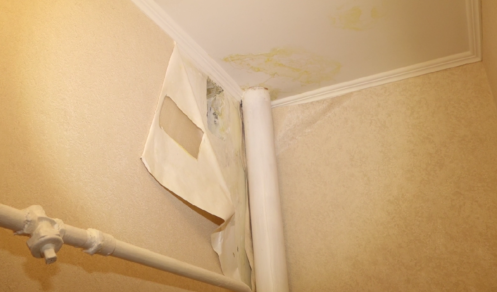Уже больше 20 лет Сергей Евдокимов пытается добиться ремонта крыши в своем доме. Мужчина живет в квартире на последнем этаже и, как никто другой, ощущает капризы природы – будь то талый снег или дождь. Еще хуже ситуация в туалетной комнате. Там отвалились обои, вздулся потолок. Хотя ремонт мужчина делал в 2022 году.