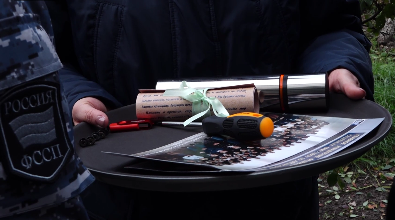 Помимо письма, рассказывающего о службе нынешних судебных приставов, в капсулу положили фотографии самого первого и нынешнего составов алтайского управления ФССП, а также флешку с разными материалами. В том числе документальные фильмы о работе ведомства. Вдохновителем стал один из членов совета регионального главка.