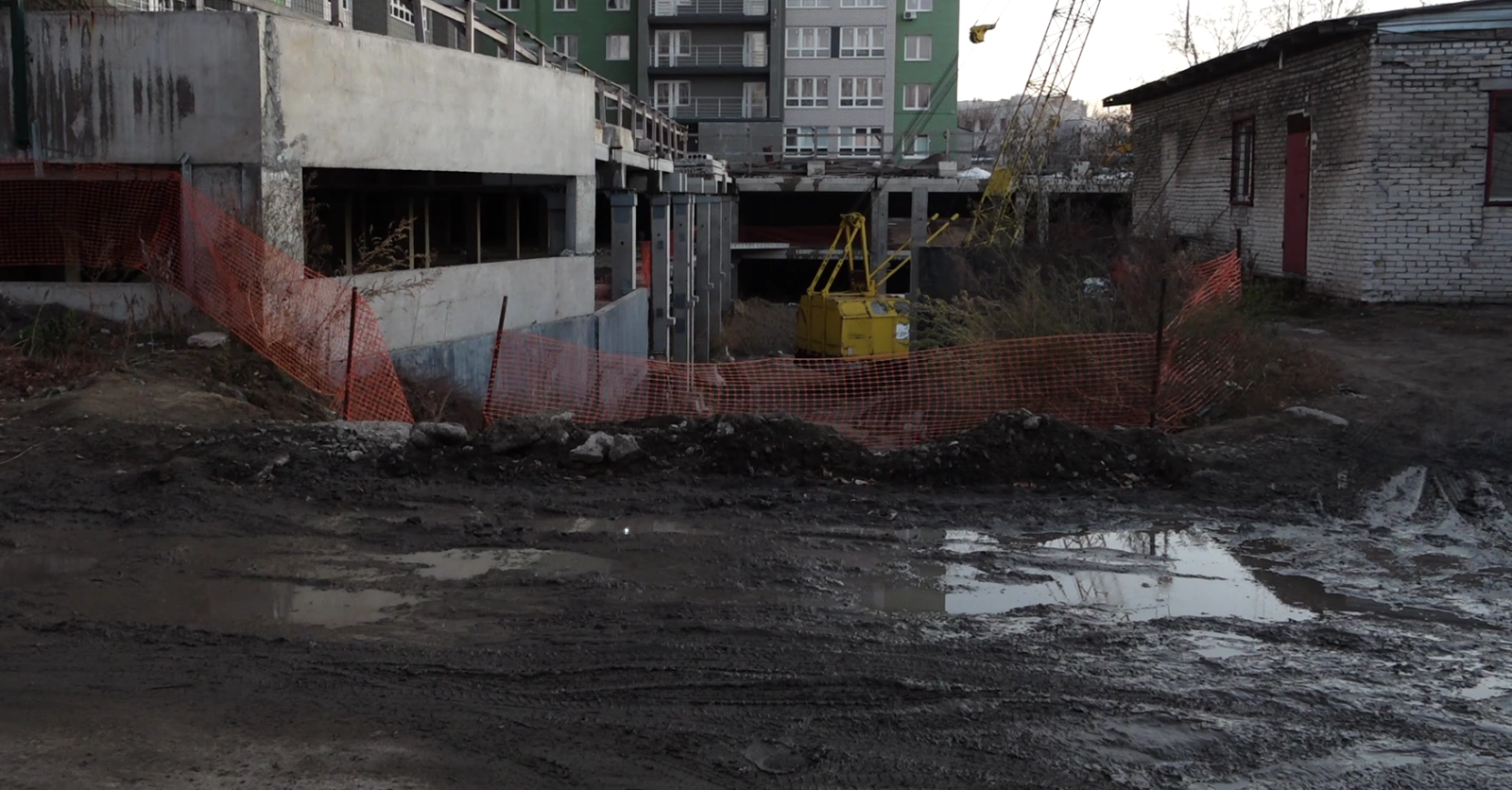 Дети играют в луже, а автовладельцы чуть ли не дерутся за парковочные места. О таких ужасах нам рассказали собственники квартир в долгострое на Петра Сухова, 34
